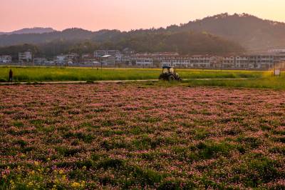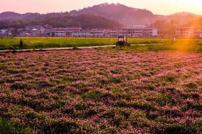 > 英山县满溪坪良种场:紫云英花开映晚霞
