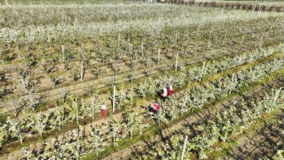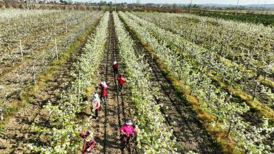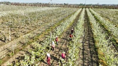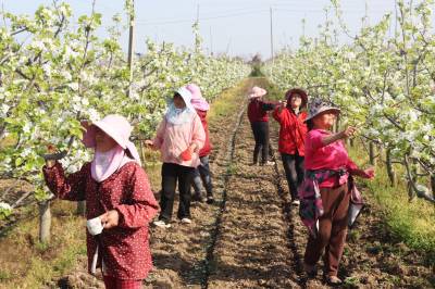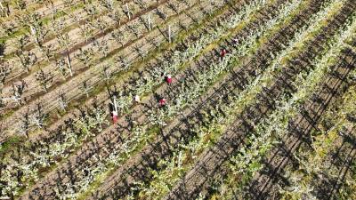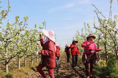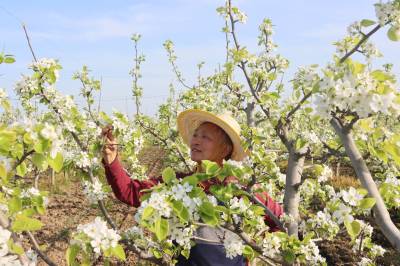 4月1日,枝江市百里洲双红砂梨专业合作社社员正在为梨花进行人工授粉,以提升砂梨座果率和赋能砂梨品质。千树万树梨花开,万亩梨花授粉忙。百里洲镇是“中国砂梨之乡”,“百里洲砂梨”为国家地理标志产品,种植面积达3.6万亩,年产量达5万吨。视界网刘卫东摄