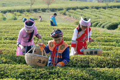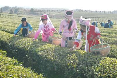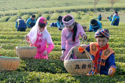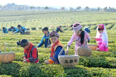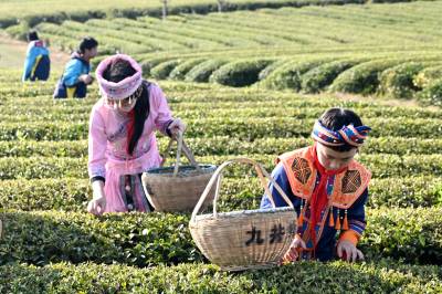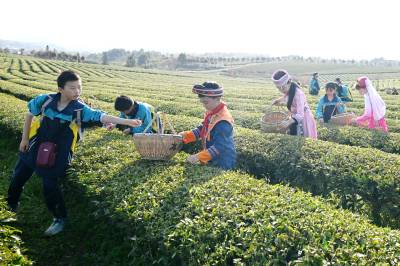 2026年4月1日,湖北省咸宁市通城县实验学校少数民族学生在沙堆九井峰茶园体验采茶。 时下正是春茶采摘季节,通城县实验学校组织少数民族学生,身着少数民族服饰走进沙堆九井峰茶园,开展社会实践活动,近距离感受农事,增长农事知识,体验劳作的辛苦与快乐,学习采茶相关知识,开展 “采茶小能手” 竞赛。