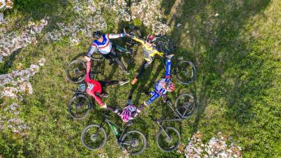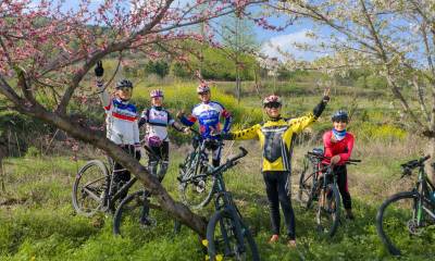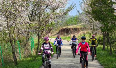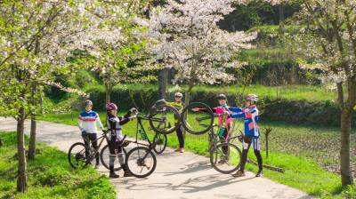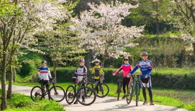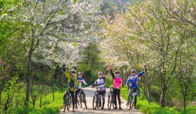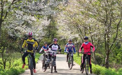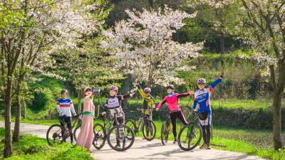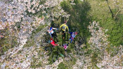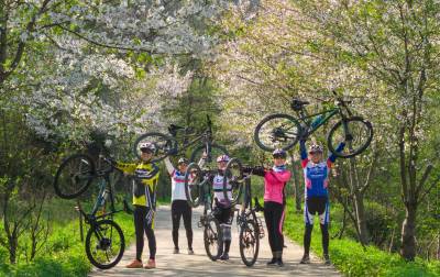 樱花把小径酿成云霞的河,骑行者的车铃撞碎光影,风掠过衣角时,听见春天在齿轮间轻唱。俯身是花瀑垂落,抬眼是绿野铺陈,我们踩着单车,把身影叠进春的掌纹里——五人五车,是流动的画,是相拥的风,是把樱花的梦,骑成了脚下的诗行。