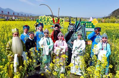 竹溪县省级非物质文化遗产山二黄在3月27日,中峰镇鲜花旅游节上的演出让人耳目一新,引来阵阵喝彩和掌声,仅在鲜花旅游节上的文艺演出节目中山二黄戏曲演出就占了一半。竹溪县宣传部长介绍,山二黄在竹溪县每个星期都有演出,主要出现在重要文化活动,各个旅游节,招商引资、武陵不夜城节假日演出上,山二黄己成为竹溪县对外一张文化名片,深受游客和当地人喜爱,每年政府为山二黄剧团拨付经费700多万元。有了当地政府的大力支持,使非遗戏曲山二黄唱响鄂西北,唱响中原大地。