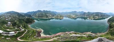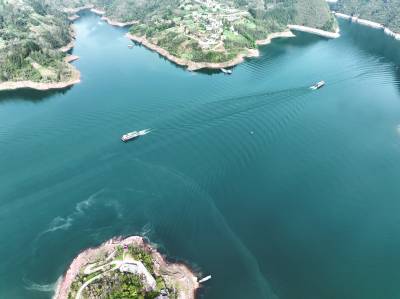 4月3日,游船正行驶在巴东县5A景区神农溪,船尾留下漂亮的鱼尾纹,沿途青山绿水,碧波荡漾,村庄春暖花开,生机盎然。