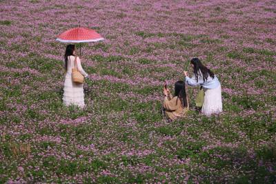 紫云英花开成海 市民周末赏花忙