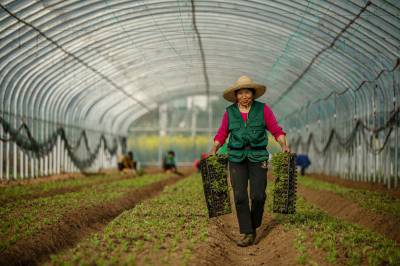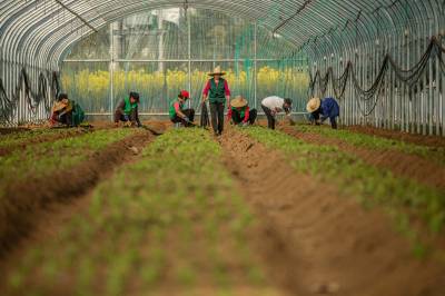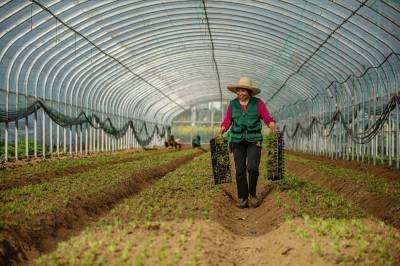 4月7日,在竹山县麻家渡镇营盘河村的蔬菜大棚内,工人们正抢抓农时,加紧移栽空心菜幼苗,田间地头呈现出一派繁忙景象。