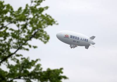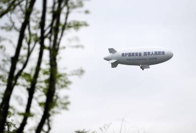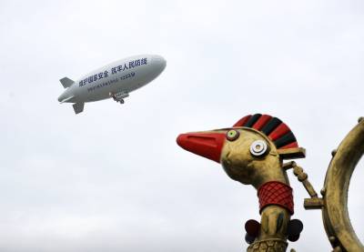 湖北荆门:国产“祥云”飞艇空中普法