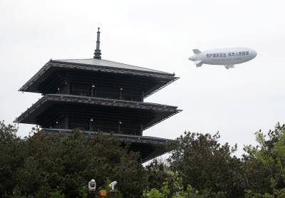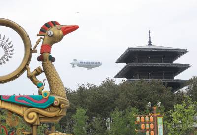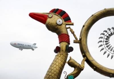 > 湖北荆门:国产“祥云”飞艇空中普法