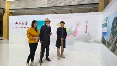 3月31日下午,88岁高龄的襄阳著名摄影家陈天纪在女儿陪同下,来到襄阳职业技术大学图书馆,参观“山河为卷——李念·汉江自然地理图志”摄影作品展。图书馆馆长方基志全程陪同讲解。