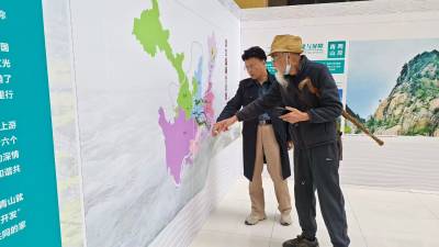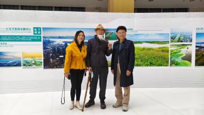 八旬摄影名家陈天纪参观襄阳职业技术大学汉江主题摄影展
