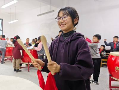宣恩:中国鼓声满校园 “咚哒,咚咚哒……”4月7日,宣恩县高罗镇中心小学中国鼓教室传来阵阵整齐而富有节奏的鼓声。循声望去,学生们正在社团活动时间练习打鼓。近年来,该校积极推进教学改革,在提升课堂教育教学质量的基础上,着力打造多样化校本特色美育课程,为师生搭建展示才华的大舞台,以美育人、以文化人,提升学生综合素养,以特色教育引领学校优质均衡发展。(王恕森 摄)