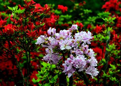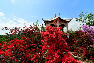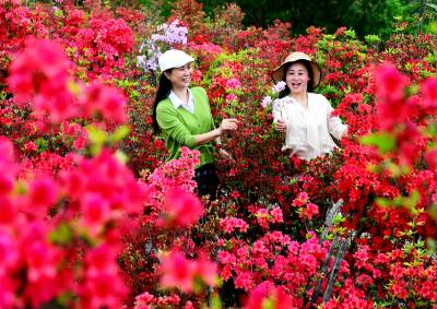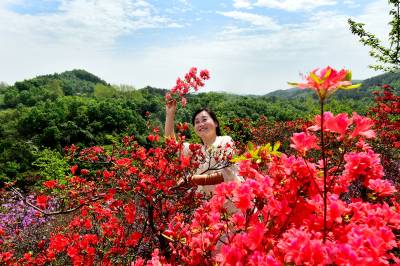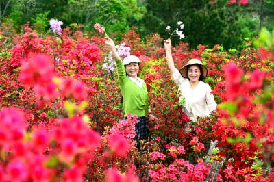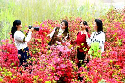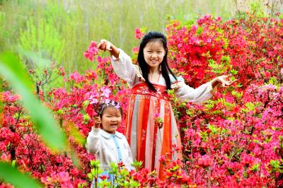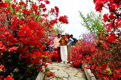 据了解,该杜鹃园占地达300多亩。清明期间,园内各色杜鹃花次第绽放,红色、粉色、紫色、白色和黄色的花朵“粉墨登场”,各展风姿。姹紫嫣红的景象交织成一幅壮丽的春日画卷,让游人们流连忘返,纷纷驻足拍照、打卡留念。