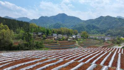 2026年4月8日,十堰市房县门古寺镇叶家河国债丹江口库区(房县段)水土治理基地,222.3公顷坡改梯已完成垄埂覆膜,准备移栽高油高质烟叶苗。近年来,房县以小流域水土流失治理为单元,实施“山、水、田、林、路”综合整治,通过工程措施、生物措施和耕作措施治理,将水土流失严重的坡地治理成“保土、保肥、保水”的“三保”水平梯田。