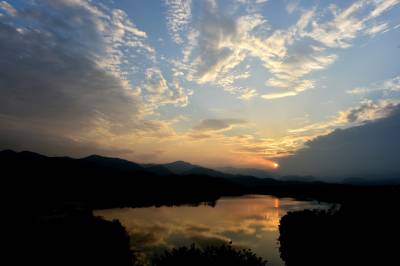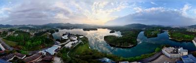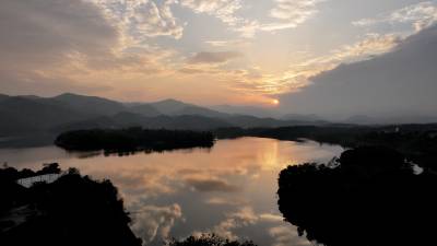 湖北南漳:一汪湖水映晚霞