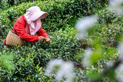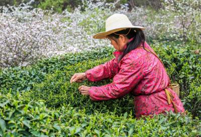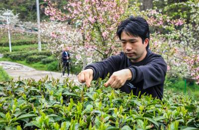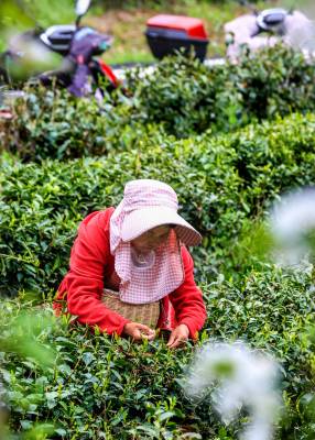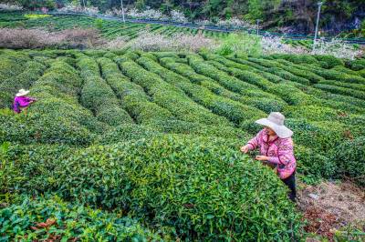 2026年4月11日,竹溪县国营综合农场杨家朳茶场,茶农正在海棠花香与茶香交融的生态茶园里采摘高山谷雨前箭茶、芽茶供应消费市场好增收。 竹溪县近30万亩有机茶茶园全面开采,竹溪大多有机茶是半高山以上云雾生态茶,当地以高山云雾生态加工制作高香型富硒箭茶、芽茶等顶尖高档春茶供应消费市场,有利茶农与茶企共同增收。