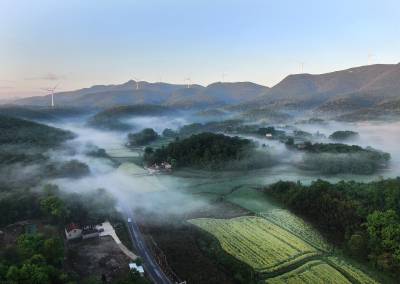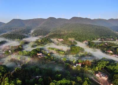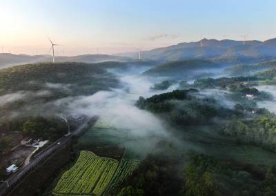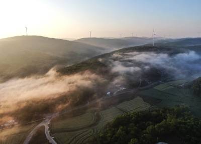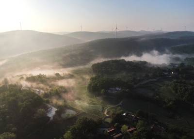 2026年4月12日,在湖北省荆门市东宝区子陵铺镇柏坪村,高耸的风电风机组伫立山野,与雾绕农庄、吐翠田园相映成趣,勾勒出一幅生态优美、低碳发展的春日画卷。 近年来,荆门市持续布局风电、光伏等清洁能源项目。截至目前,全市能源总装机达706.4万千瓦,清洁能源占比超60%,且呈逐年稳步提升态势。当地电力部门积极服务风电项目并网运行,保障绿色电力可靠消纳,为地方产业转型注入绿色动力。通讯员 赵平 李翊嘉 摄