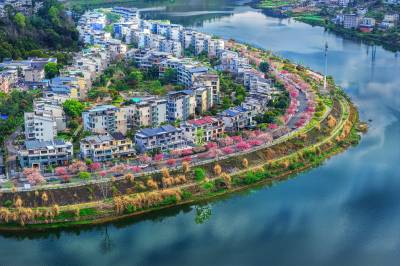近日,位于宜昌市夷陵区小溪塔城区段的长江支流黄柏河水域沿岸春花绽放,一河碧水绕城东流,高矮楼房鳞次栉比,构成了一幅壮丽的生态宜居城市画卷。近年来,宜昌市夷陵区统筹推进水生态和水环境综合治理,在省级“幸福河湖”长江支流黄柏河沿线打造人与自然和谐共处的生态湿地体验区,让一河碧水汇入长江。(视界网 张国荣 陈晓霞 摄)