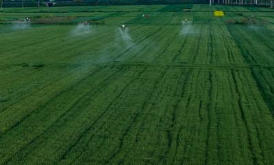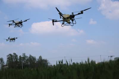 4月12日,襄阳市襄州区伙牌镇上张村,植保无人机在麦田开展赤霉病统防统治作业。作为全国粮食生产大市,襄阳为保障国家粮食安全筑牢坚实根基,当地小麦当前正值抽穗扬花关键期,也是赤霉病防控的决战期,当地发挥种粮大户、专业服务组织主力军作用,以“大户带小户”模式推进全域防控,筑牢小麦稳产丰收防线,确保夏粮丰产丰收。