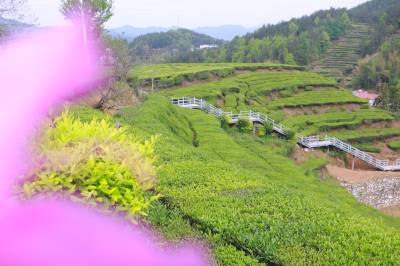 2026年4月12日,雨过天晴,湖北省英山县杨柳湾镇茶叶谷村春茶萌发,春花绚烂,明媚春光吸引市民趁周末前来观光打卡、赏茶园风光、品千年茶香,沉浸式感受茶旅融合的独特魅力。
