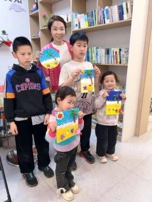故事落幕,创意手工环节正式开启。书屋精心准备彩纸、黏土、画笔、贝壳、卡纸等丰富材料,为孩子们搭建艺术创作平台。在老师耐心示范与指导下,孩子们化身小小艺术家,尽情释放天马行空的想象力。大家小心翼翼折叠、粘贴、涂鸦,用白色黏土捏制翻滚浪花,以彩色卡纸描绘金色沙滩与飞翔海鸥,亲手打造专属的“卡梅拉”与小船。