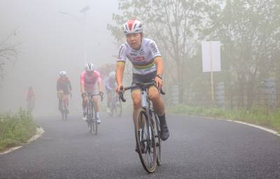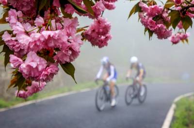 2026年4月12日,“供水杯”茶山自行车邀请赛选手,骑行在竹溪县龙王垭茶场路接近终点赛程段上。 4月12日,竹溪县在汇湾镇游客中心举办2026年“供水杯”茶山自行车邀请赛,赛程30公里——汇湾镇游客中心至龙王垭茶场陆羽文化广场。来自俄罗斯和中国客地500余名自行车骑行选手参加本次低碳骑行强体魄、乐享春光比赛活动。