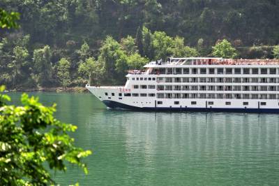 “长江贰号”游轮总吨位11691吨,长139.05米,宽19.6米,满载452人,外观大气俊朗,被誉为长江游轮中的“美男子”,是长航游轮旗下高端豪华游轮的杰出代表。除了岸上的景点游览,游轮本身也成为了一个不可多得的旅游目的地。“长江贰号”为游客提供了丰富多彩的船上娱乐与休闲空间,可以在游轮上品茶、观影、健身、游泳,尽享美好、欢乐、幸福的游轮生活。同时,游轮上还精心准备了沉浸式年代剧和乐舞表演,让游客们在欣赏中感受到长江文化的独特魅力与时代风采。(视界网 张国荣 摄)