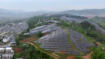 2026年4月14日,航拍十堰市房县红塔镇邓营村光伏发电基地。近年来,房县充分利用光能资源优势,发展光伏发电产业,助力生态环境高质量发展,促进乡村振兴、农民增收。 目前,该县光伏电站、屋顶分布式光伏发电装机容量近17万千瓦,全县305个行政村实现光伏电站全覆盖。发电产业成为当地财政增收、村级集体收入的贡献大户。