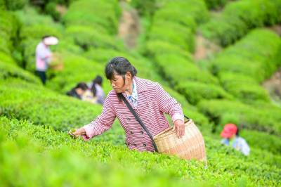 2026年4月15日,湖北省黄冈市浠水县洗马镇龙凤山村的千亩生态茶园里,茶农们正抢抓晴好天气,采摘茶叶。曾经的荒山荒坡,如今已变身绿意盎然的 “金山银山”,成为当地带动农户增收、助力乡村振兴的特色支柱产业。近年来,浠水县立足山地资源禀赋,通过 “党支部 + 合作社 + 农户” 的发展模式,大力推进荒山流转、生态茶园建设,同步完善茶产业加工、销售全链条,不仅让闲置土地焕发新生机,更带动了周边百余户村民就近就业,实现了 “生态美、产业兴、百姓富” 的良性循环,为乡村全面振兴注入了源源不断的 “茶动力”。