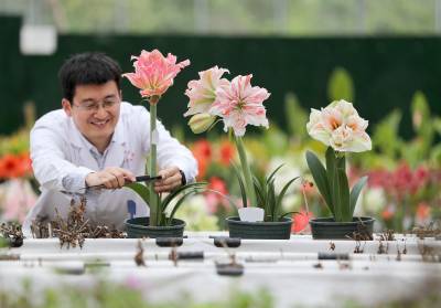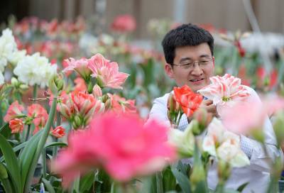 2026年4月15日,在荆楚理工学院智能温室大棚里,花卉育种团队正精心管护自主培育的“霞辉”“彩霞”“红晖”3个朱顶红新品种。目前,这3个新品种已正式获国家植物新品种权证,填补了湖北省朱顶红自主育种空白。