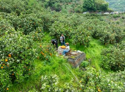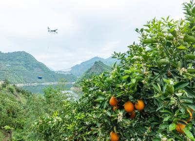 2026年4月15日,湖北省宜昌市秭归县沙镇溪镇千将坪村,伦晚脐橙丰收。 秭归县是脐橙生产大县,脐橙也是全县主导富民产业。眼下,正是春季脐橙成熟时节,果农采用无人机吊运脐橙,通过电商直播销售脐橙,助力高效采收销售,大幅节省劳动力、缩短脐橙从枝头到消费者手中时间,提升农业生产效率,促进农民增收。