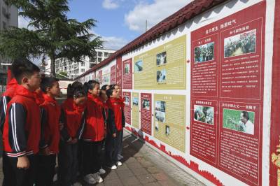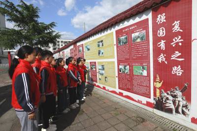 校园里最引人注目的便是长达48米的红色文化墙。这面墙是学校开展革命传统教育的“露天课堂”,以“忆苦思甜、铭记历史”开篇,依次展开“律师仗义、烈士同俦”“二七风暴、血染丰碑”“不忘初心、砥砺前行”等八个篇章。墙下,孩子们的目光专注而崇敬。世界读书日前夕,学校选拔的“小小讲解员”已能自信地站在文化墙前讲解。当天,六年级学生小刘正在为低年级学弟学妹讲述“二七风暴”:“1923年,施洋烈士参与领导了京汉铁路工人大罢工……”稚嫩却坚定的声音在文化墙前回荡。