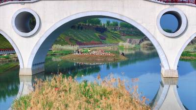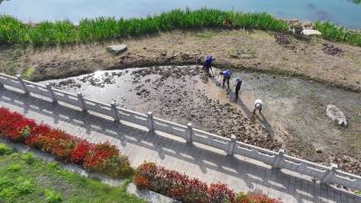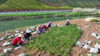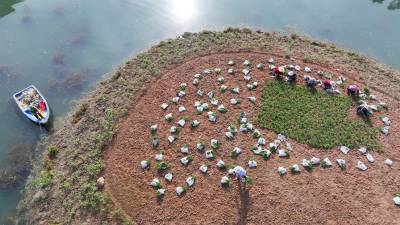 2026年4月19日,十堰市房县城关镇炳公村区域大河流域,当地农民在湿地人工“绿岛”植栽水生植物菖蒲,绿美“幸福河湖”。近年来,房县践行绿色发展理念,对城市区域的马栏河、大河、沙沟河等5条河流实施大保护,绿美水域岸线,拓展河流梯级人工湿地,依托水生植物自然净化水质。目前,当地河流水质长期达到国家Ⅰ类或Ⅱ类标准,呈现出清水潺潺、苇波荡漾、白鹭翔集的生态景观,打造宜居宜业的幸福家园、康养城市。