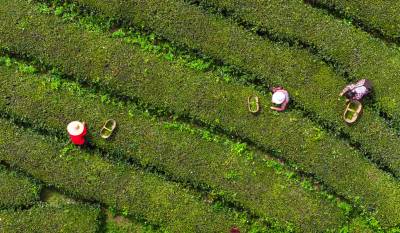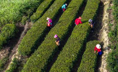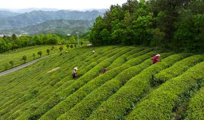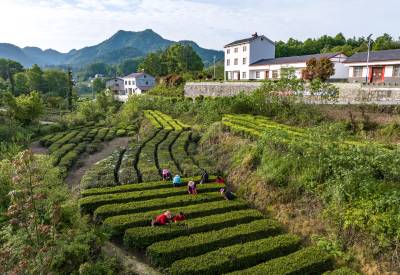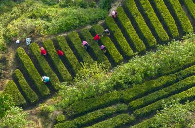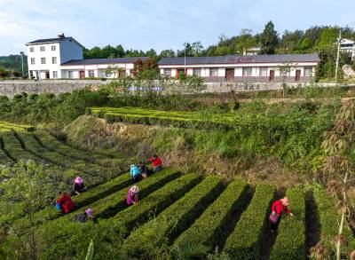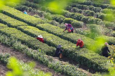 4月17日,茶农在襄阳市保康县店垭镇采摘茶叶。谷雨降至,湖北省襄阳市保康县20万亩茶园进入鲜叶采摘“黄金季”,茶农抢抓晴好天气,采摘、加工春茶,供应市场。据了解,湖北省襄阳市保康县把茶产业确定为主导产业,历经数十年接续发展,茶叶产业已从零星种植成长为全县农业特色产业的“第一产业”,所产“襄阳高香茶”畅销海内外。目前,全县10个乡镇均有茶叶种植,2万余户茶农种植茶叶,综合产值突破20亿元,小小茶叶已成为当地群众增收致富的特色富民产业。