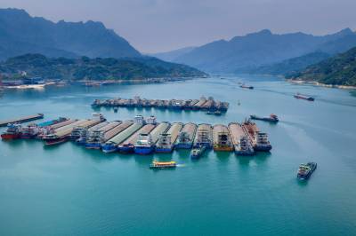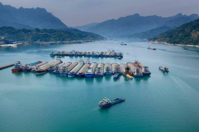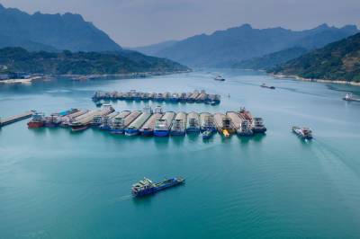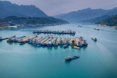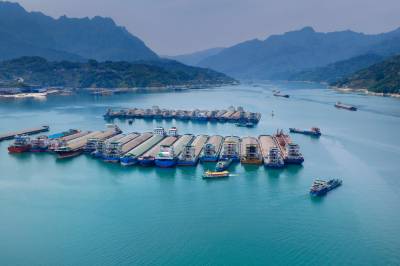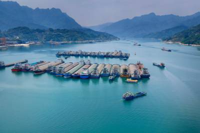 2026年4月19日,几艘环保船正在三峡大坝上游湖北省宜昌市秭归县待闸锚地去收集待闸船舶上的废油残油、含油污水、生活污水、生活垃圾等废弃物,运上岸进行分类处理和资源化利用。船舶废油污水不入江,有力保障了三峡库区水环境安全,守护一江碧水东流。