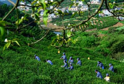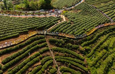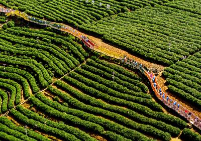 4月19日,是农历三月三,竹山县“武当山茶·竹山硒茶”第四届茶旅文化活动在宝丰镇龙井村茶园举行,游客们通过游园赏景,观看花鼓船歌、古筝、“无我茶”茶艺表演,体验采茶、炒茶,品茶和学生在茶园写生等活动,加深对茶文化的理解,助力茶文旅融合发展。据悉,竹山通过盘活30万亩荒山资源,建成高产稳产生态茶园,深耕茶文旅融合,延伸产业链条,让传统茶产业迸发新活力,带动5万农民增收致富。