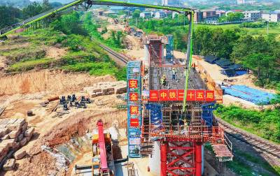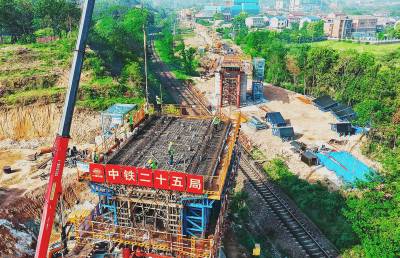 4月19 日,由中铁二十五局负责施工的鄂州花湖国际机场铁路联络线首个连续梁0#块顺利浇筑。此次浇筑的汪家旗杆特大桥主跨0#块,为项目控制性工程关键节点,标志着桥梁工程由下部结构正式转向上部结构施工。该线路为湖北省重点工程,全长22.022公里,桥隧比41.1%,建成后将衔接武九铁路鄂州站,在花湖机场南端设货运站。项目对打通铁路“最后一公里”、降低物流成本、完善航空物流枢纽、助推地方经济发展具有重要意义。视界网 方仲华摄