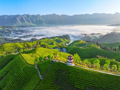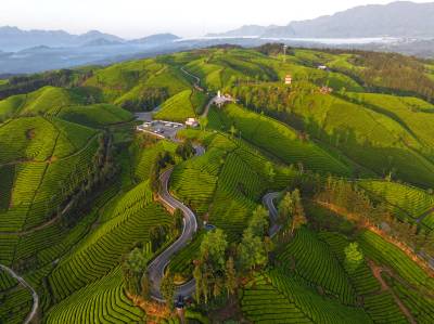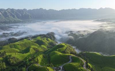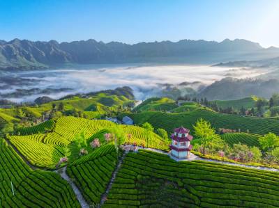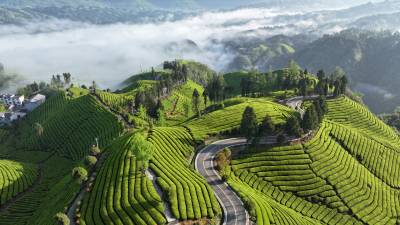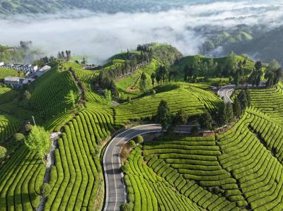 2026年4月18日,湖北省恩施土家族苗族自治州鹤峰县走马镇木耳山,茶山翠绿,云雾缭绕,蜿蜒的道路,错落有致的民居,与连绵茶山构成一幅静谧的生态画卷。 作为"中国三十座最美茶园"之一,木耳山现有连片茶园10700余亩。近年来,鹤峰县依托良好生态资源大力发展有机富硒茶,推动茶旅深度融合。当地通过生态种植与茶旅融合发展,既让"云雾茶园"成为游客向往的诗与远方,更带动茶农增收、企业增效,实现生态效益与经济效益双提升。(视界网 张远明 摄)