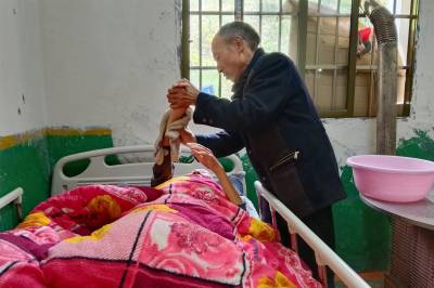 得益于良好的家风,照顾老人成为童德生一家人的温情共识。妻子李凤英在村里的食堂做饭,看着丈夫日复一日的操劳也十分体谅,做饭、洗衣、洗被子,一有空就帮忙打理。“感谢乡亲们的帮助,这么多年我们也从没想过放弃。”李凤英说:“老人性格好,看着他舒心的笑容,我们再苦再累也值得。”