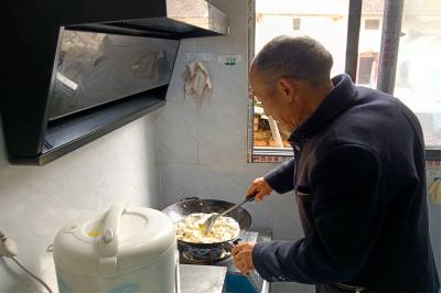 2026年4月16日,临近中午,在宜昌市夷陵区下堡坪乡赵勉河村一间出租屋的厨房里,61岁的童德生正佝偻着身子,忙碌着为卧床的105岁养父谭光伸做软烂合口、温热可口的午饭。