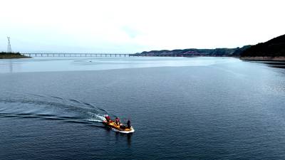 世界地球日来临之际,南水北调中线工程核心水源地的湖北省十堰市郧阳区,汉江清漂志愿服务队的队员们如往常一样驾着清漂船来到丹江口水库库周捡拾岸边的垃圾、打捞水面的漂浮物。郧阳区近年来建立保水护水长效机制,全员当好“守井人”,岸上水下综合施策,守护一泓清水永续北上。视界网王涛摄