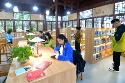 书房创新采用“图书+旅游+非遗”三位一体模式,文创展示区陈列根雕、竹木器等非遗作品,本土特产也同步亮相。作为“15分钟城市文化圈”的重要节点,书房填补了公园区域公共文化服务空白,让“转角遇见书香”成为全民阅读新景,日常推出公益讲座、亲子阅读等活动。