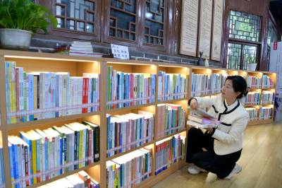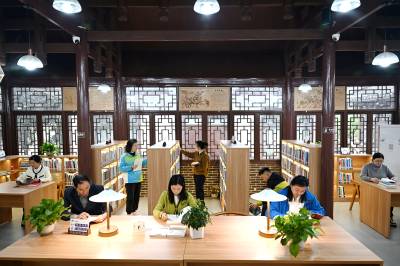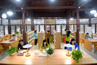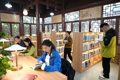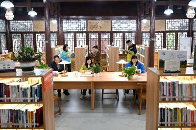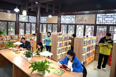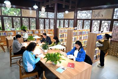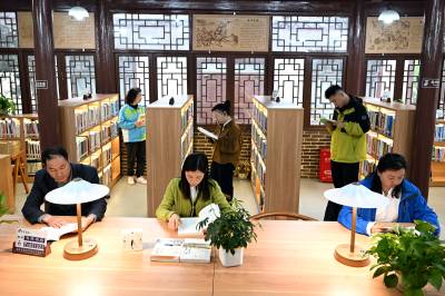2026年4月21日,湖北省咸宁市通城县秀水公园内的“隽秀书房”里,市民正在阅读。