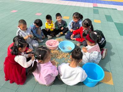 > 萌娃剥花生 从小爱劳动