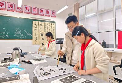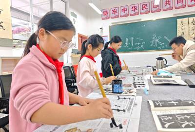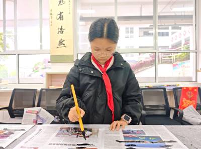 4月21日,宣恩县高罗镇中心小学的书法社团课堂上,孩子们正专注地练习毛笔书法。同学们手握毛笔,在纸上认真临摹,一笔一划间尽显专注。 据了解,该校依托课后延时服务开设书法、刺绣、滚龙连厢等多个特色社团,以多元化活动落实“五育并举”,让乡村孩子在丰富的课程中传承文化、全面成长。(王恕森 摄)