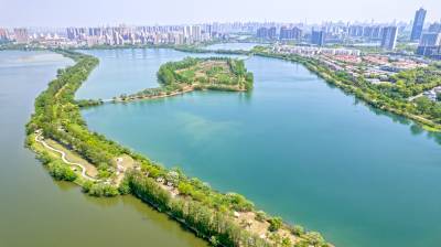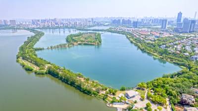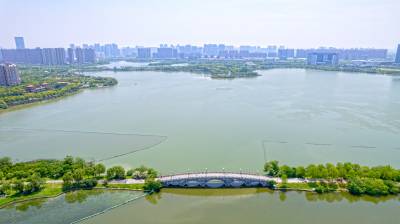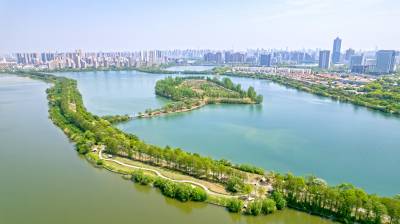 2026年4月19日,湖北省武汉市东西湖区的金银湖国家城市湿地公园景色旖旎,澄澈的湖水与错落的城市建筑、葱郁的绿树相映成趣,共同勾勒出一幅生态与宜居共生的和谐画卷。 近年来,武汉市持续推进江河湖环境治理,加强湿地保护与生态修复,通过湖底清淤、水系连通等措施修复生态基底,目前已建成42公里环湖绿道及绣球花海等网红景观,每年吸引大批市民游客前来休闲游玩。