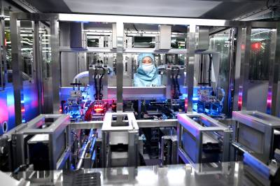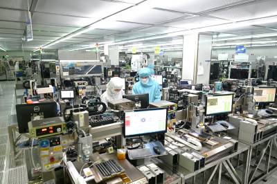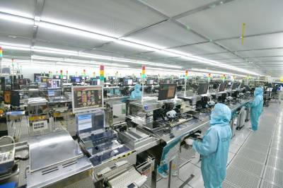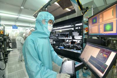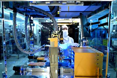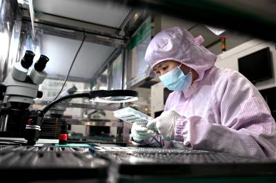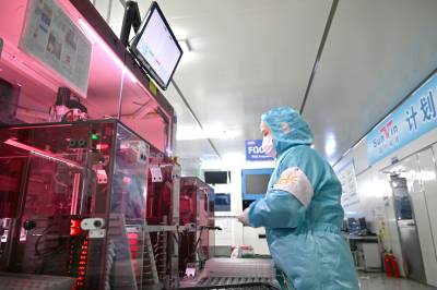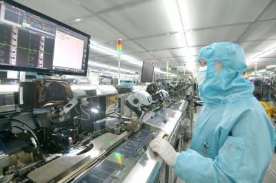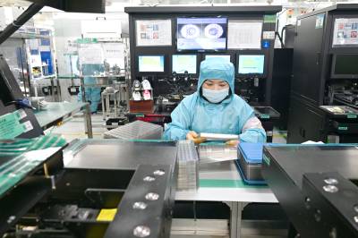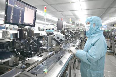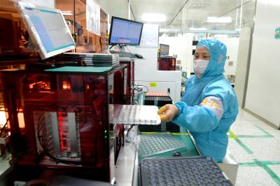2026年4月22日,在湖北省咸宁市通城县电子信息产业园,湖北三赢兴光电科技股份有限公司员工正在生产、检测、封装智能影像模组产品。
