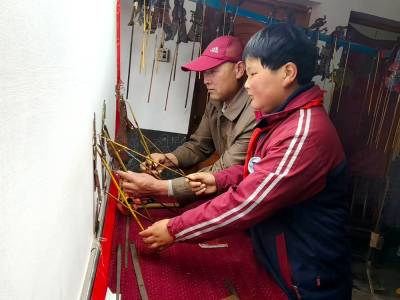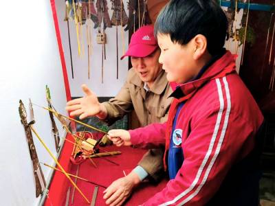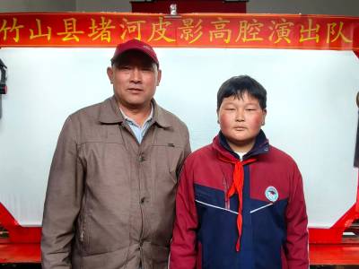 4月22日,竹山县竹坪小学周崇浩,利用课余时间赶赴该乡安河口村,协助堵河皮影高腔演出队为群众演唱皮影戏。