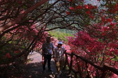 连日来,英山县天马寨杜鹃花海如约盛开,十里五色杜鹃花如梦似幻,旖旎多姿,五彩斑斓,一步一景入画来,吸引各地游客踊跃前来观光游览。