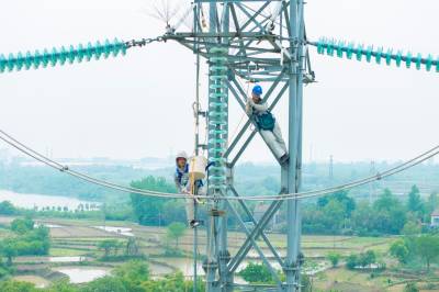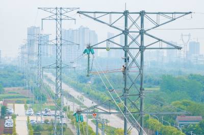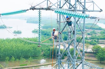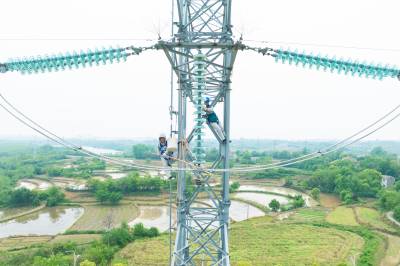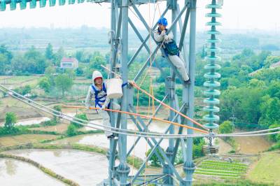 湖北沙洋:塔上“穿针引线” 消除线路隐患