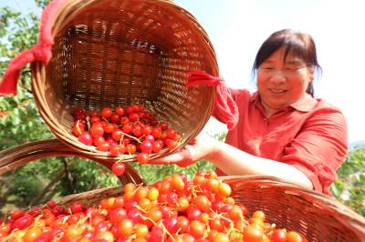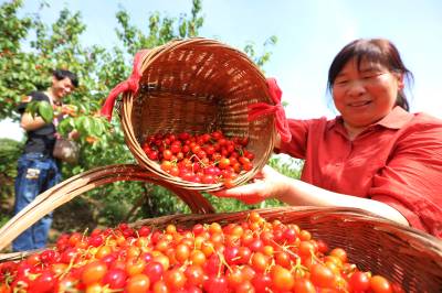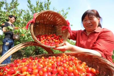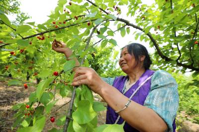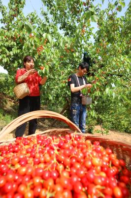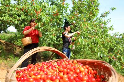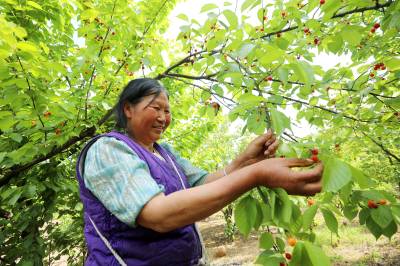 房县:荒山长出“致富果” 2026年4月26日,十堰市房县城关镇八里望小流域樱桃园,鲜红的樱桃挂满枝头,当地农民忙碌着采收樱桃,樱桃产业年均实现综合收益突破3亿元。 近年来,房县秉持“绿水青山就是金山银山”理念,综合治理小流域荒山坡地,在治理后的水土治理区裁植樱桃、鲜桃、香梨等水保经果树。如今,该县治理后的54条小流域荒山披绿,50万亩荒山成了“花果山”、农民增收的“绿色银行”。视界网 张启龙 摄