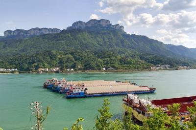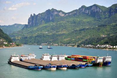 2026年4月23日,一些上行货船停泊在宜昌市夷陵区境内的长江西陵峡乐天溪镇下岸溪锚地水域等待通过三峡船闸。为全力做好长江水运通航保障,长江海事部门近日对重庆至武汉段的宜昌三峡、葛洲坝枢纽过坝船舶待闸锚地和临时停泊区进行优化调整,实行联动管控和交通组织一体化管理,按照过坝船舶种类,分别设置普通货物船舶和载运危险品船舶的专用停泊锚位,确保各类船舶“停得下、停得安全”。通过引导船舶分区锚泊,并按照过坝调度计划错峰航行,实现船舶“停得安稳、走得有序”。(视界网 张国荣 摄)
