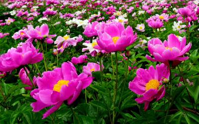 九集镇古林坪村的山谷里,一场盛大的花事正悄然上演。千万株芍药仿佛一夜之间接到了花神的密令,齐刷刷地绽开了笑靥——红的热烈,像天边烧云的余烬;粉的娇羞,似少女初妆的腮红;白的纯净,如月光凝成的霜雪。它们一朵挨着一朵,一片连着一片,从山脚漫向坡顶,把整个山谷泼洒成一幅斑斓的油画。